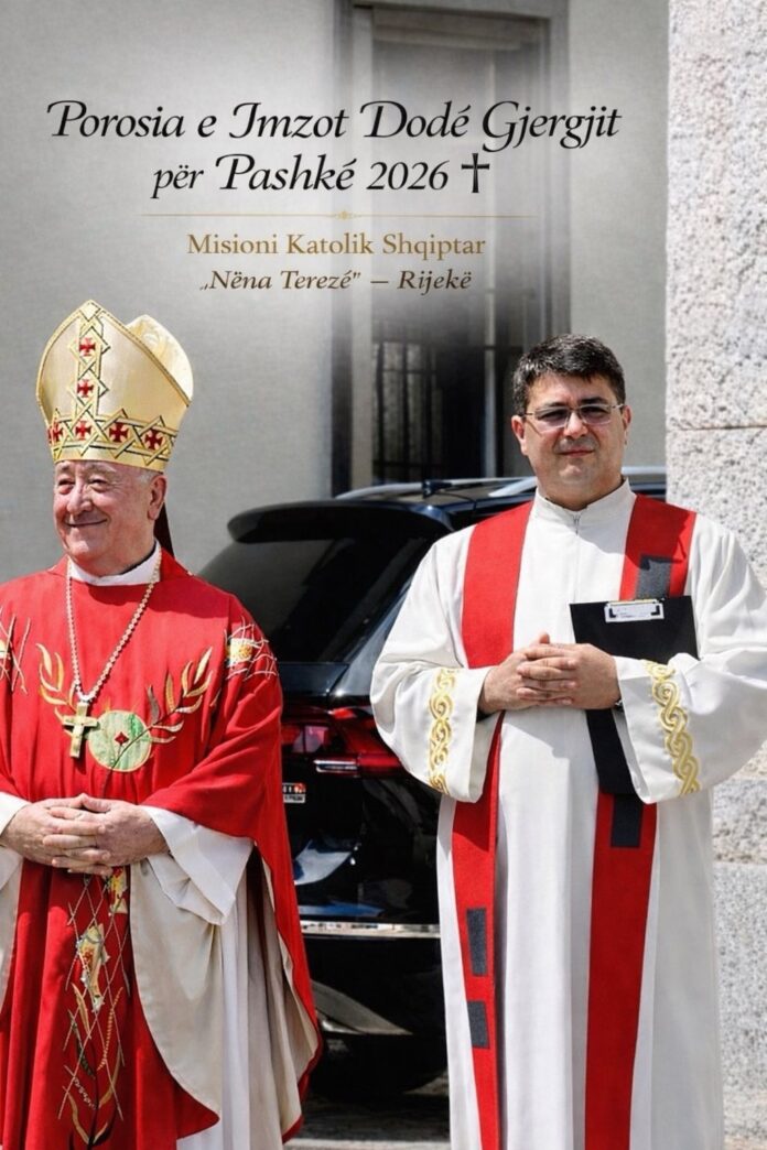 Ia besoj Krishtit të Kryqëzuar dhe të Ringjallur secilin prej jush dhe i lutem Atij për nevojat tuaja, që në zemrën e secilit prej nesh të mbretërojë dashuria, në familjet tona harmonia dhe në vendin tonë paqja. Në mënyrë të veçantë, ia paraqesim Atij të gjithë ata që janë në skajet e shoqërisë: të varfrit dhe të harruarit, të mirët që vuajnë në heshtje, të nëpërkëmburit nga padrejtësitë dhe të plagosurit nga luftërat e kësaj bote. Le të jetë dashuria e Krishtit balsam për plagët e tyre, dritë në errësirën e tyre dhe forcë që i ngre në dinjitetin që u përket si bij të Hyjit. Dhe le të na bëjë edhe ne vegla të kësaj dashurie, që askush të mos mbetet i përjashtuar nga shpresa e Ngjalljes dhe nga paqja që buron prej saj.