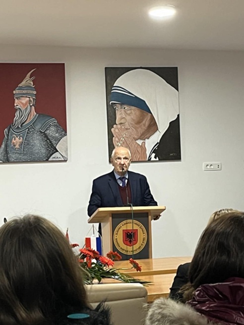 Ndihem i nderuar që sot mund t’ju drejtohem në Akademinë Shkencore “Ditët e Nënës Terezë” këtu në Pulë, organizuar nga Bashkësia Shqiptare në Prefekturën e Istrës dhe Misioni Katolik Shqiptar “Nëna Terëzë” në Rjekë. Na bëri bashkë vepra e madhe humane e Bijës Sonë, Nanës së Botës, Shën Nana Terezë.